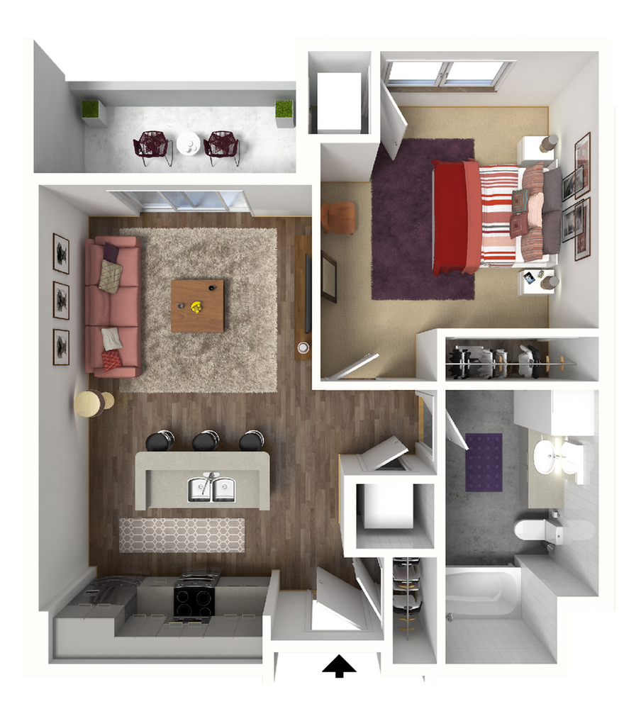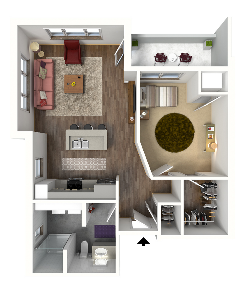 Studio, 1 Bath, 631 sq ftModel Gallery