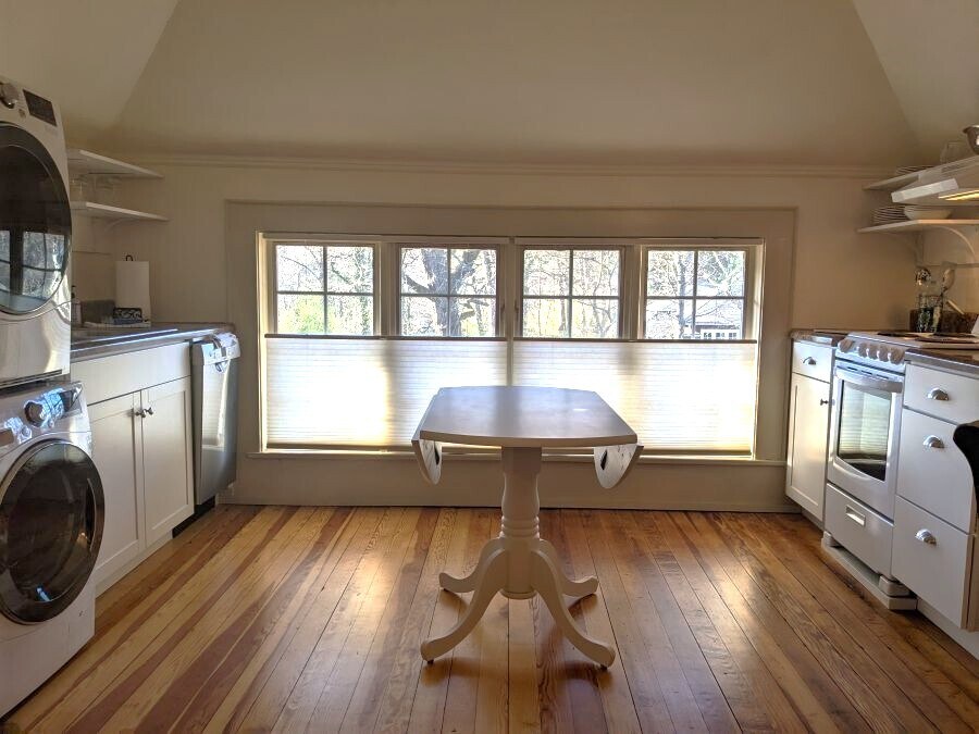 Apartment for rent with all utilities and cable included in the charming town of Tryon. Upstairs, unfurnished apartment in a historic, well-maintained 4-unit house featuring original heart-pine floors, updated kitchen with dishwasher, bathroom with clawfoot tub/shower, central heat & AC, and washer/dryer in unit; located in a beautiful private setting within Tryon's town limits -- just blocks away from shops, parks, post office, library and arts venues. Outdoor features include stone walkways, circular drive, and off-street parking in a private, residential setting. A 2-year lease is preferable. Apartment is currently unfurnished, but furnishings are negotiable. Broker has ownership interest. This is a private residence, please respect the privacy of residents by not using the driveway except for scheduled showings, turn around in the street at the end of the cul-de-sac.