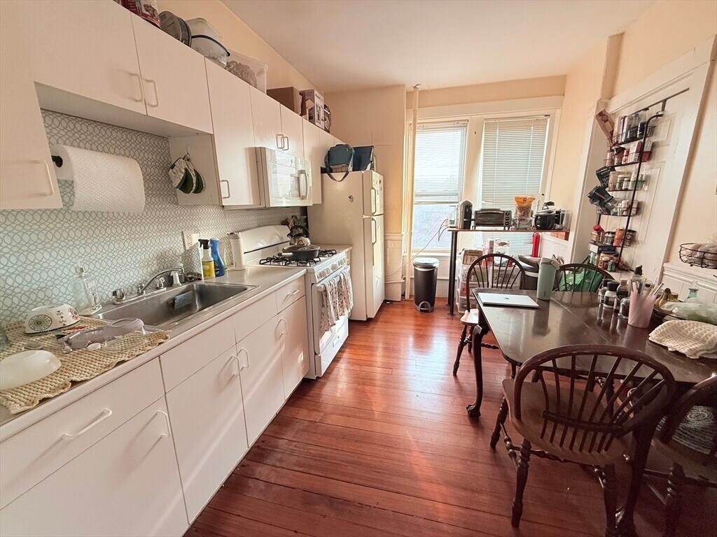 Bright top-floor 3-bedroom / 1-bathroom condo on Washington Street in the heart of Brookline Village! Available October 2025. Rent $3600 /month (includes heat and hot water). Located on top floor of quiet, professionally managed condominium building. Three equally large bedrooms and sunny eat-in kitchen with great cabinet space. Gleaming hardwood floors throughout. Laundry in-unit! No parking although there are spots available for rent nearby. Unbeatable Brookline Village location: fantastic shops, cafes, and restaurants at your doorstep. Steps to T-station (Green D line), and quick walk to Coolidge Corner and Longwood Medical Area!220-224