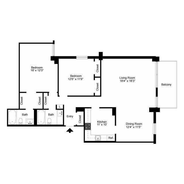Apartment Model: 11From $1,8001 Bedroom, 1 Bath, 630-635 sq ftAvailable Now![]()
