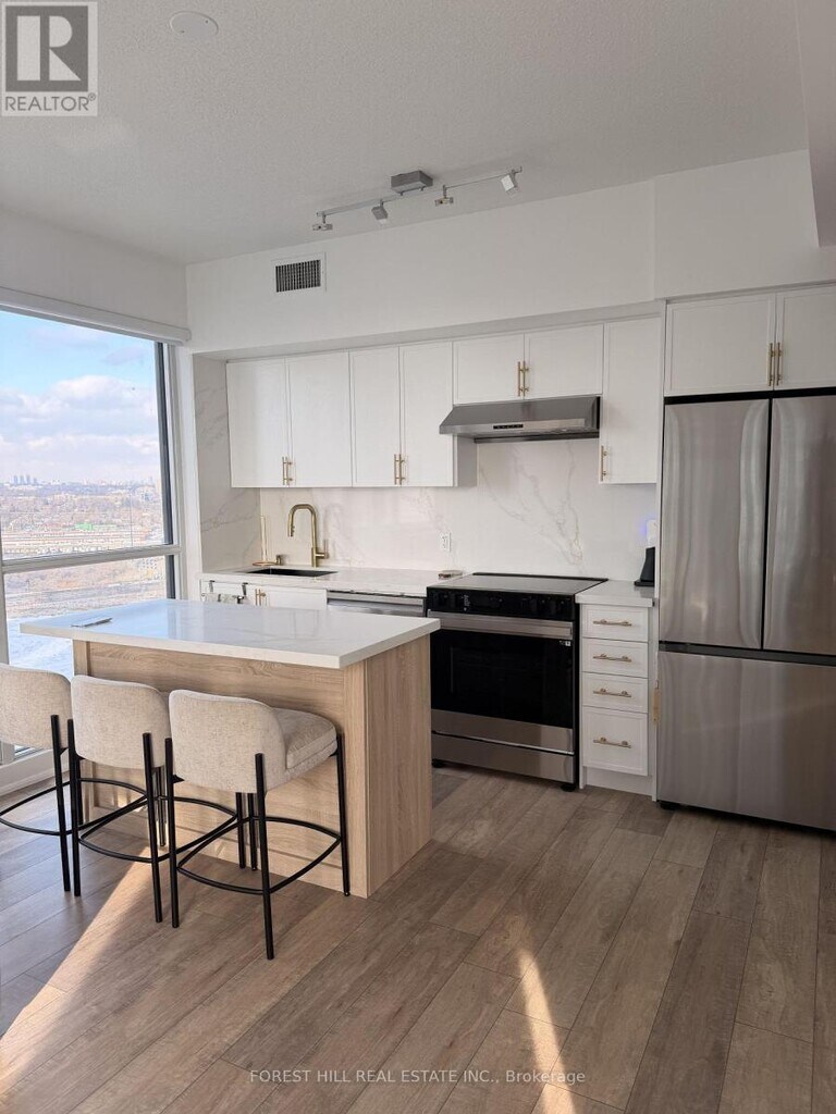 Bright and modern 2-bedroom,2-bathroom condo with an open balcony offering stunning city,lake,and park views. Features laminate flooring throughout,quartz countertops,and a beautifully upgraded kitchen with new cabinetry,backsplash,sink,island,and Samsung Bespoke fridge and stove,plus a new kitchen fan.Recent upgrades include fully painted unit,automatic remote-controlled blinds,new doorknobs,and updated bathrooms with new shower fixtures and toilets.Enjoy premium amenities: gym,indoor pool,rooftop garden,lounge,24-hour concierge,and visitor parking. Steps to lake,parks,streetcar,Metro & Shoppers,with quick access to the Gardiner.Move-in ready waterfront living (id:52069) ID#: 1970563
