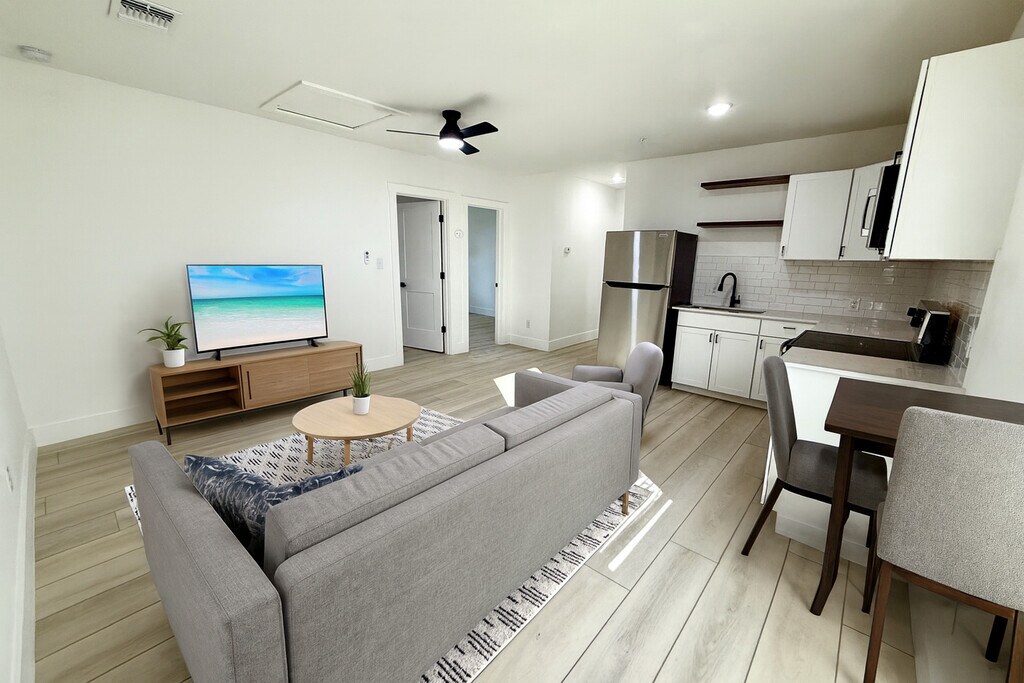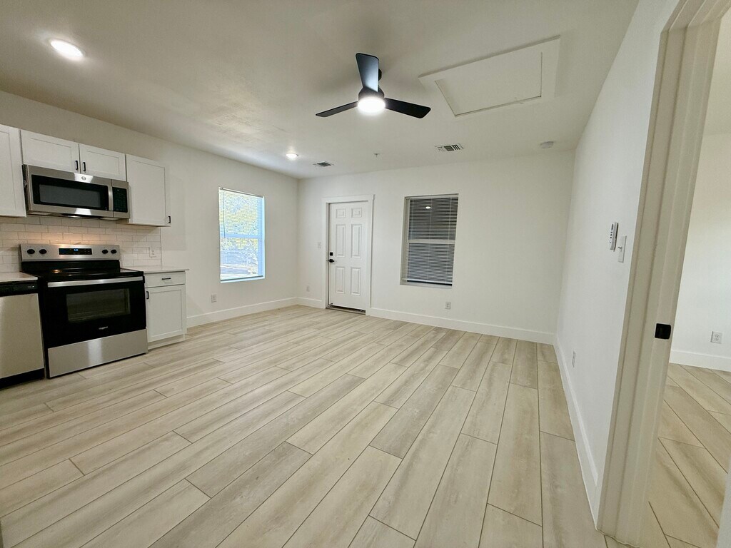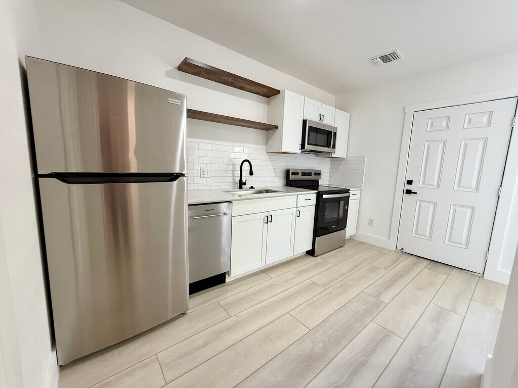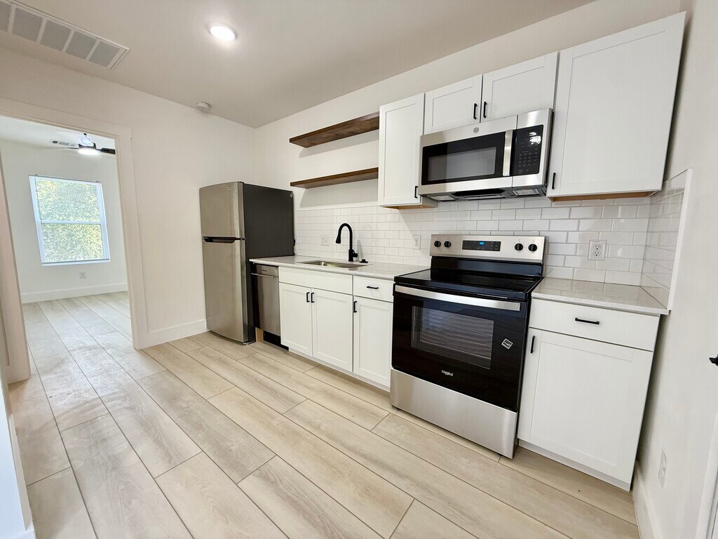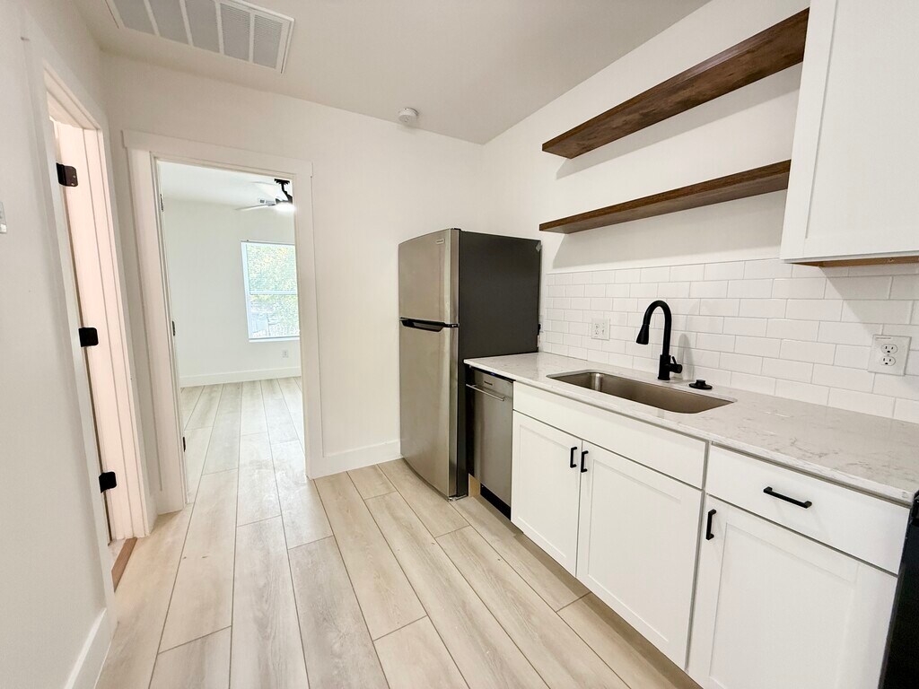 Receive TWO WEEKS FREE-Owner offering a rental rebate with a 12-18 month lease! Be the first to occupy this fully renovated multi-family unit building that offers a stuido apartment, 1 bedroom, 2 bedroom, and a 3 bedroom unit. This property is located near popular downtown New Braunfels walking distance to Ernest Eikel Field / JAWS Skate Park. The units offer Castlewood oak laminate flooring throughout & granite countertops in kitchen! Brand new stainless appliances including Fridge, Microwave, Range & Dishwasher. Fresh sod. Washer & dryer access onsite. Garage parking & Covered parking available for an additional fee, while supplies last. Each unit has its own electric meter- tenant responsibility. Renters insurance required. Don't wait to receive your rental rebate incentive today!