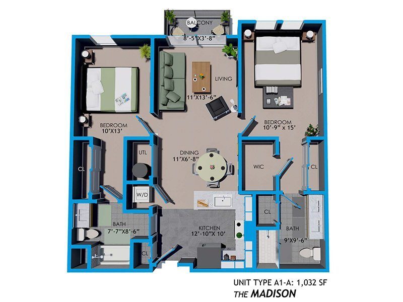 Hudson - Floorplan 2 Apartment Unit: 104Apartment Model: Hudson$2,0352 Bedroom, 2 Bath, 1013 sq ftAvailable NowMadison