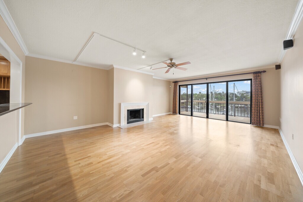 12mo Lease Commencing Immediately Condo Board Tenant Approval Required 3 Beds 2 Full Baths 1,791 Sq. Ft Relax & unwind in this updated 3rd Floor Condo fronting the Melbourne Harbor Marina. The location of this building 'Harbor Walk One' cannot be beat and neither can these incredible sunset views. The Unit's Kitchen features granite countertops, stainless steel appliances, a flat cooktop, built-in oven and microwave. Natural light filters through a full living room wall of quad sliders highlighting natural wood flooring and a wood burning fireplace. The private balcony overlooks Crane Creek where you can watch the boats go out to the river or dolphins playing each morning. The Primary Suite boasts stunning views, a door to the balcony, and walk-in closet with custom shelving. The Primary Bath has double sinks, a built-in dresser, and tiled shower. There's an extra bedroom with a walk-in closet and views of the Indian River, plus a second Bedroom OR Office with built-in desk. Parking provided on-site and access to a resident pool; utilities paid by tenants. Small dogs allowed with temperament evaluation by owner.