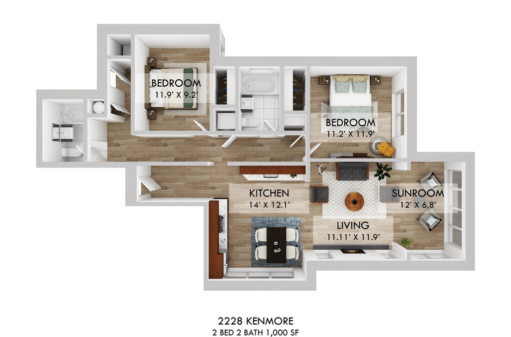 2 Beds, 2 Baths, 1000 sq ftModel Gallery