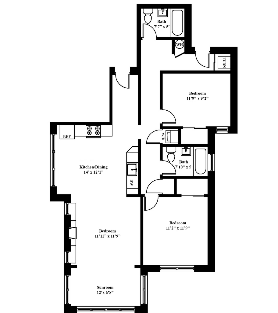 Two Bedroom Two Bath - Floorplan 2 Two Bedroom One Bath