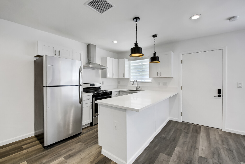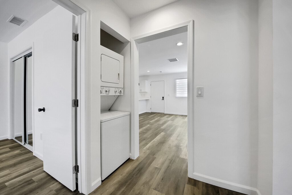 in-unit washer/dryer, brand new flooring, all new fixtures, new quartz countertops, new stainless steel appliances, secured gated entry