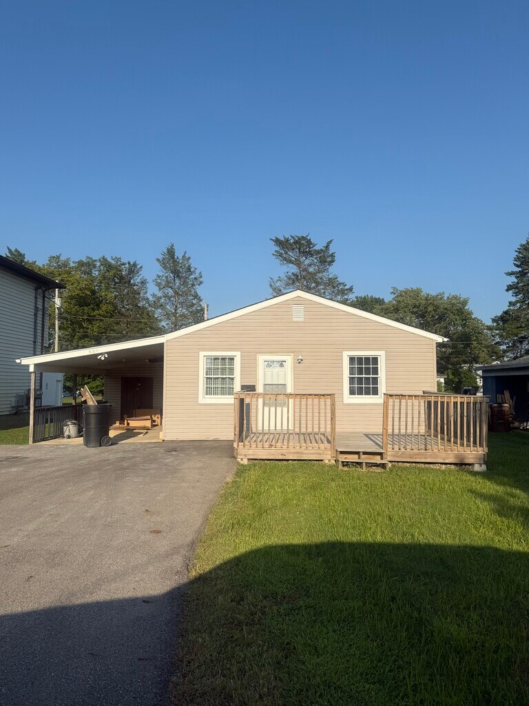 Month to month rental- stove, refrigerator, dishwasher, washer, dryer, microwave included. Newly renovated- front deck, small yard- renter pays all utilities and trash -NO PETS