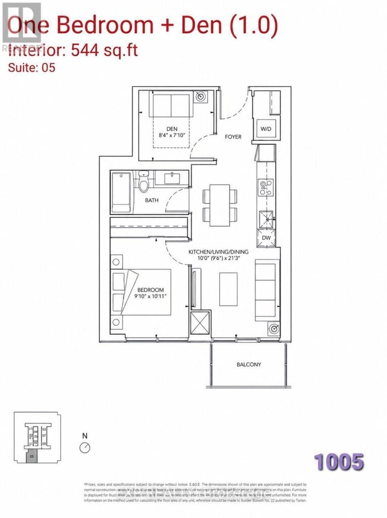 Welcome to Festival Condo Tower A,where modern urban living meets refined design. This thoughtfully designed 1-bedroom + den suite offers 544 sqft of stylish and functional living space,featuring a bright open-concept layout with 9-ft ceilings,floor-to-ceiling windows,and wide-plank laminate floors throughout. This residence showcases a designer kitchen with quartz countertops,built-in stainless steel appliances including ceramic cooktop,refrigerator,oven,and dishwasher - along with sleek cabinetry. The bedroom provides a calm retreat,while the versatile den easily functions as a home office,study corner,fitness nook or creative space. Enjoy the convenience of in-suite laundry and enjoy access to over 70,000 sqft of unmatched amenities,including 24-hour security,a fully equipped fitness centre,social lounge,party room,remote work areas,kids' playroom,music & art studio,sports bar,outdoor theatre,pet stop,and more. Ideally located steps from the VMC subway station,major bus terminals,the vibrant Assembly Park,and highway access,this suite offers seamless connectivity for commuters and downtown professionals alike. Experience luxury living where lifestyle meets convenience - welcome home to Festival Towers. Your lease includes complimentary Goodlife Fitness membership,with parking rental available through property management. (id:63800) ID#: 2072139