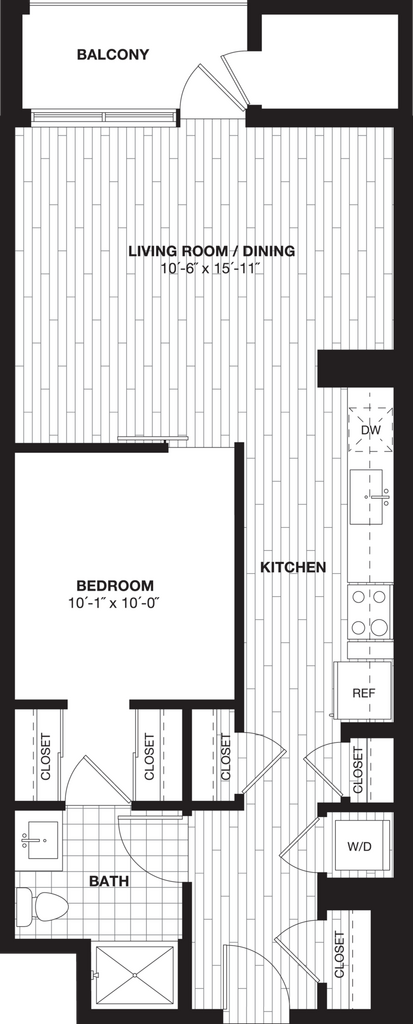 S6B - Floorplan 1 Apartment Unit: 1735Apartment Model: S6B$1,6851 Bedroom, 1 Bath, 630 sq ftAvailable NowFloorplan S6A