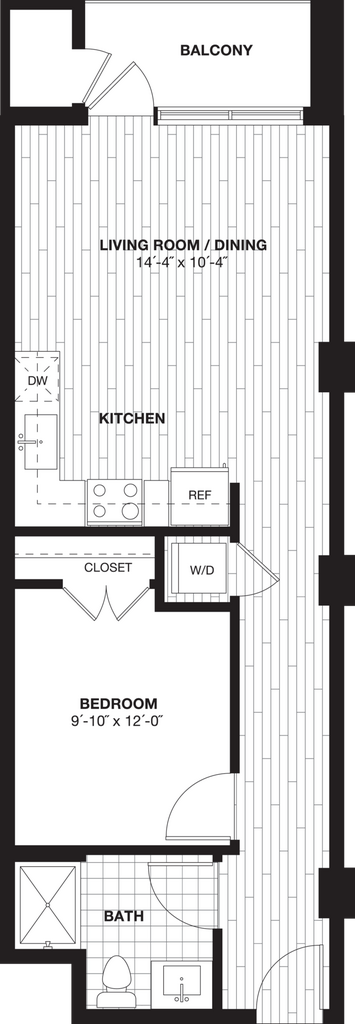 Apartment Model: S5From $1,4301 Bedroom, 1 Bath, 630 sq ftAvailable NowFloor plans are artist's rendering. All dimensions are approximate. Actual product and specifications may vary in dimension or detail. Not all features are available in every rental home. Prices and availability are subject to change. Base rent is based on monthly frequency. Additional fees may apply, such as but not limited to package delivery, trash, water, amenities, etc. Deposits vary. Please see a representative for details.