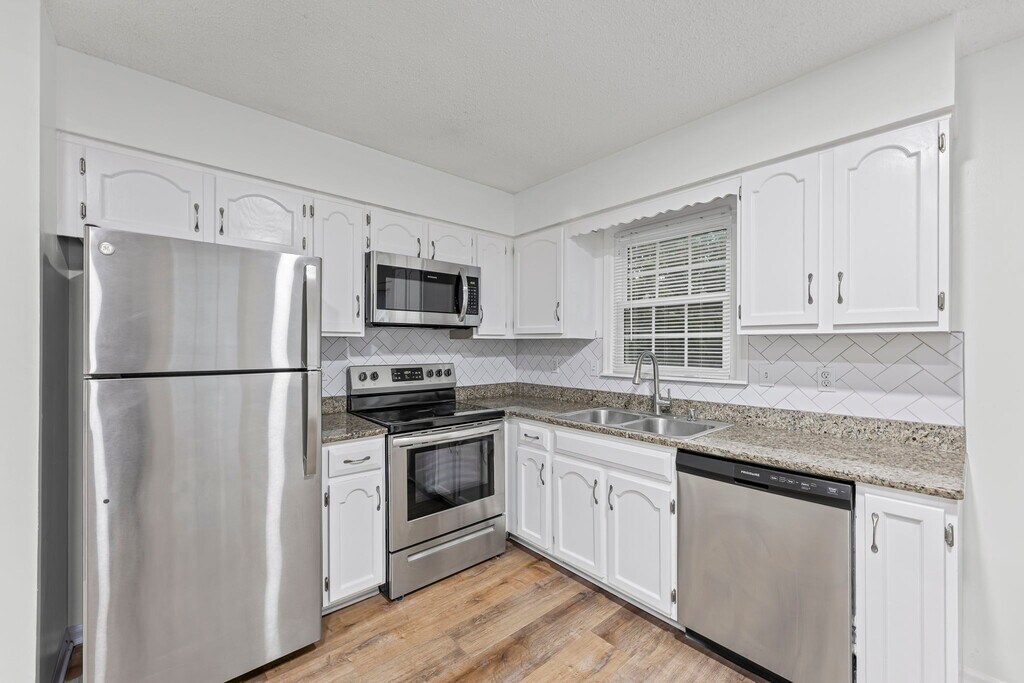 Completely renovated duplex located minutes from shopping centers, highways, and great Olathe school district. This beautiful 3 bedroom and 2 full bathroom home have just been freshly painted inside and outside, all new luxury vinyl floors throughout, new stainless steel appliances, and updated bathrooms. It has great natural lights along with new LED light fixtures. Upstairs have two bedrooms and a full bathroom and downstairs have a bedroom with its own full bathroom and a walk-in closet. There's a flex room on the main level that can be used as an office or play area and one car garage with a laundry room. The kitchen has granite countertops and a tile backsplash that opens to the living room and dining area, perfect for gathering with family and friends. Spacious backyard that backs into trees. Available for immediate move-in.