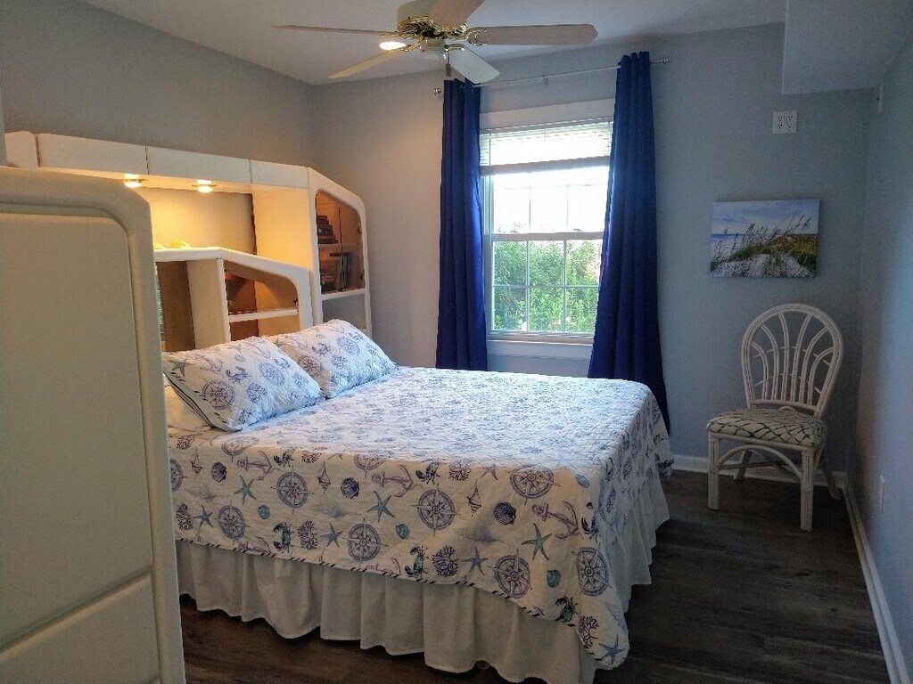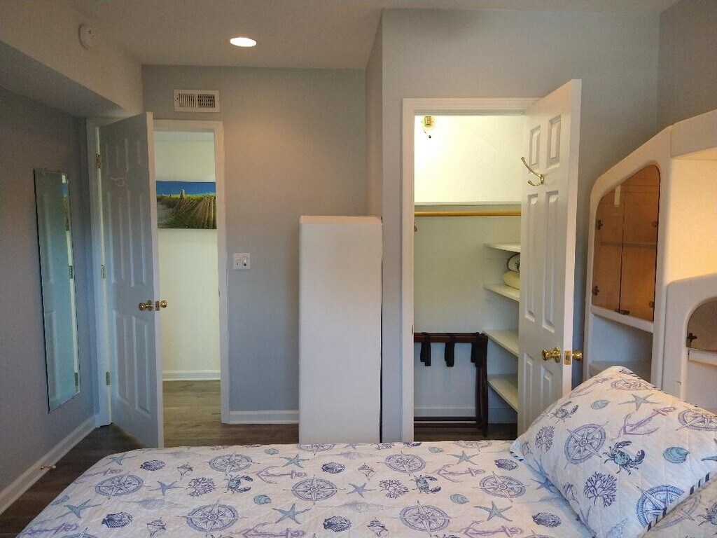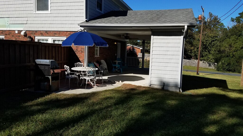 This sunny 1-bedroom apartment is the lower part of a split-level home in the desirable, family-friendly Holiday Harbor neighborhood. Trails End Park/boat launch is less than a mile away, directly across Masonboro Loop Rd. from Monterey Drive. Rights to a resident-only Intracoastal Waterway access area, great for launching kayaks, is provided by Harbor Villa HOA. The entrance to the apartment is on a large, covered porch. The porch is exclusively for the use of this apartment's tenant. You can pull your vehicle right up to the porch steps. An extensive remodel in 2019 included new kitchen cabinets, countertops, bathroom vanities, lighting and plumbing fixtures, HVAC upgrades, LVP flooring throughout, new blinds, new roof & updated paint colors throughout. Rooms are bright with ceiling fans in the living room and bedroom. The semi-open floor plan flows nicely. Your private backyard oasis is behind the large covered porch. It is separated by a wooden privacy fence from the adjoining tenants. Routine lawn maintenance by a local service is included as an additional perk. This includes the whole yard. (The owner maintains all trees and shrubs.) This is a Non-Smoking property. Smoking/vaping is not allowed inside OR outside due to this being a shared property. The LOWER APARTMENT IS AVAILABLE TO RENT. (The main house is occupied.)There is no access or shared spaces between the two units. Because the apartment is attached, strict quiet hours are requested of both occupants. Parking for the apartment (this listing) is limited to the left side of the double-width driveway, which will easily accommodate 2 vehicles parked in tandem. Occupants of the upstairs unit will only use the right side. PETS: One dog will be considered and will only be accepted at management's discretion. This is in consideration of the space itself and the other occupants on property. Any questions, please reach out. There is an additional monthly fee, as well as a non-refundable pet fee. We require a meet & greet and the pet will be listed on your rental agreement. Any additions after the lease is signed must be approved by the management and will be subject to an additional monthly fee. There are currently 2 small dogs who reside on property. They have proven to be quiet and very well behaved. You agree to comply with the following rules: Your furry family member must be under your control at all times as the yard space for the apartment is not fully fenced. Your pet should be well trained (doesn't intimidate other dogs, bark constantly, dig up the yard, chew or scratch the interior or exterior of the home). You will pick up after them responsibly (keeping in mind the other tenant enjoying a little fresh air on the other side of the privacy fence and the lawn mowing service). You will not leave your pet unsupervised for long periods in the apartment. Amenities in this home include: private side entrance with keyless entry large covered porch with fans and safety lighting exterior storage closet on porch private backyard space with a patio for your exclusive use Luxury Vinyl Plank flooring throughout Step-in shower stall and laundry hookups in bathroom Large kitchen with plenty of cabinets, counter space, stove hood with external exhaust, dishwasher, garbage disposal and fridge 2 Linen closets Large coat closet Walk-in closet in bedroom REQUIREMENTS INCLUDE: application background and credit check First month's rent and security deposit If Pets, then non-refundable pet fee & monthly fee Lease Terms: 1 year minimum with security deposit equal to 1.5 months rent.