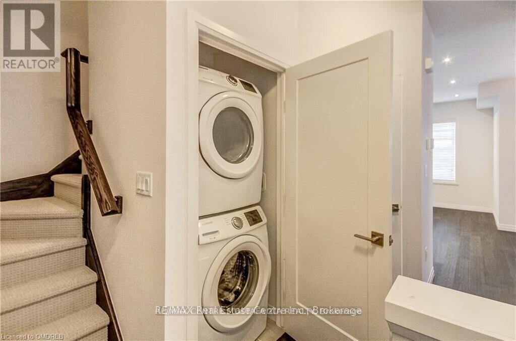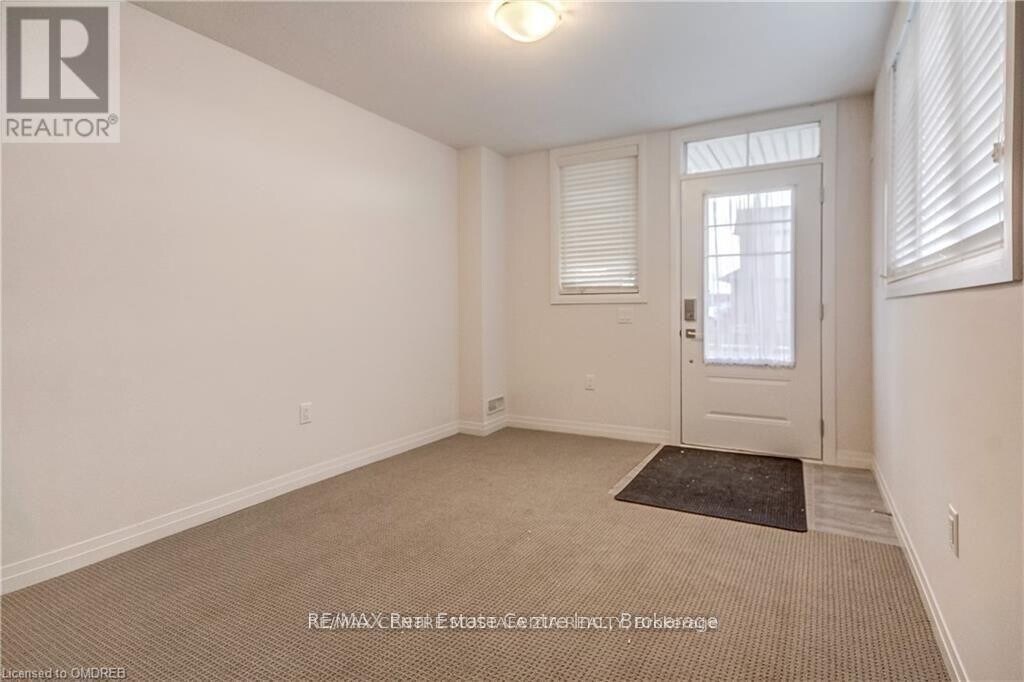 Gorgeous corner end-unit 3-bedroom,2-bathroom Losani-built home in a fantastic Ancaster location. Bright,open-concept living room/flex space welcomes you in,with gleaming dark hardwood floors throughout the second level. The kitchen features stainless steel appliances,a double sink,window,and stylish grey cabinetry,creating a warm and functional space.Enjoy the open-concept great room with hardwood floors,pot lights,and a walk-out to a private balcony. Additional highlights include a spacious storage closet and convenient main-floor access to the garage.The third floor offers three bright bedrooms,including a primary bedroom with broadloom and a walk-in closet with built-in organizers. All window coverings are installed. Ideally located close to schools,parks,and just minutes to the highway. (id:63800) ID#: 1802881