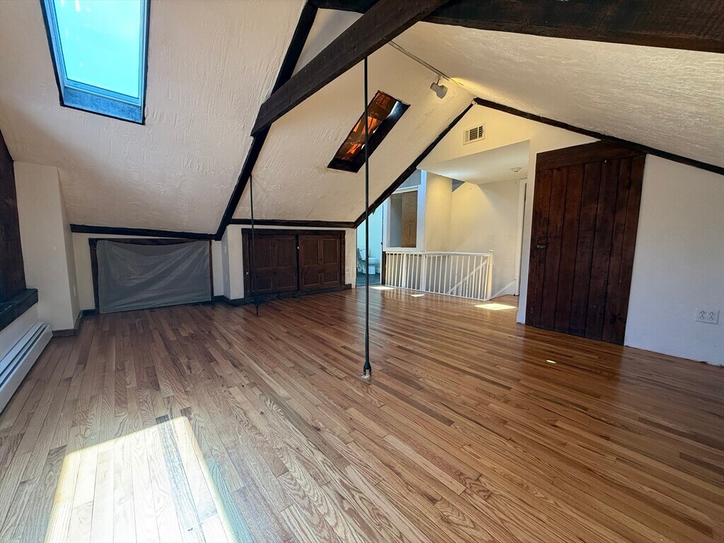 Don't miss this spacious and unique 4-bedroom, 2-bathroom bilevel apartment just minutes from Boston. Featuring hardwood floors, decorative fireplaces, and a dramatic room with cathedral ceilings and skylights, this home is full of character and natural light. It includes a full kitchen, living room, central A/C, in-unit laundry room with additional hookups, and tons of closet space. You'll also enjoy two assigned off-street parking spots and reduced utility costs thanks to solar panels. Quiet and private, yet conveniently located near Route 93, Station Landing, Assembly Row, and Encore Casino.