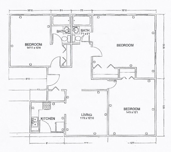 3 Bedroom - 2 Bathroom - Floorplan 1