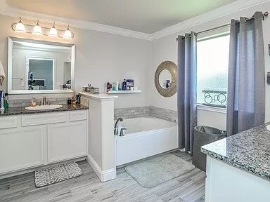 4 Bedroom 2.5 Bath 2 Car Garage 2,398 sqft Beautiful home in the coveted Bell Farms. Upgraded wood tile in high traffic areas. Crown molding throughout, upgraded cabinetry, granite counter tops, stylish barn doors, cream and grey color tones, oversized pantry, Owned RO System, the sequestered Master Suite w/ Separate Tub/ Shower, & Walk-in Closet. Lubbock Cooper ISD. $50 Application Fee $2,500 per month $1,500 deposit $500 Pet Deposit with max 2 pets Available November 1st