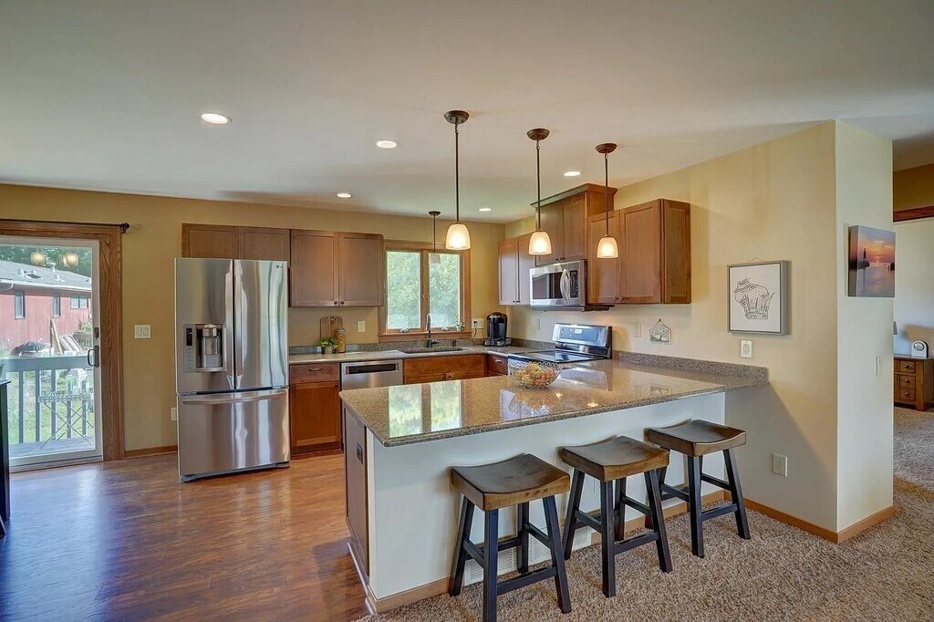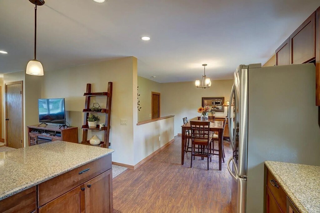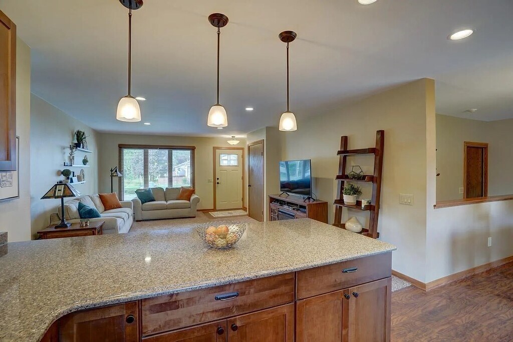 Recently remodeled, custom tile shower, abundant natural light, attached one car garage, open kitchen with quartz countertops and stainless steel appliances. Bonus entertaining area in the basement. One of the best school districts in Dane county. Right next to a small creek. Nice big backyard. This is listing is for one side of a side by side duplex. No Pets. Note: The furniture in the photos is only for staging photos.
