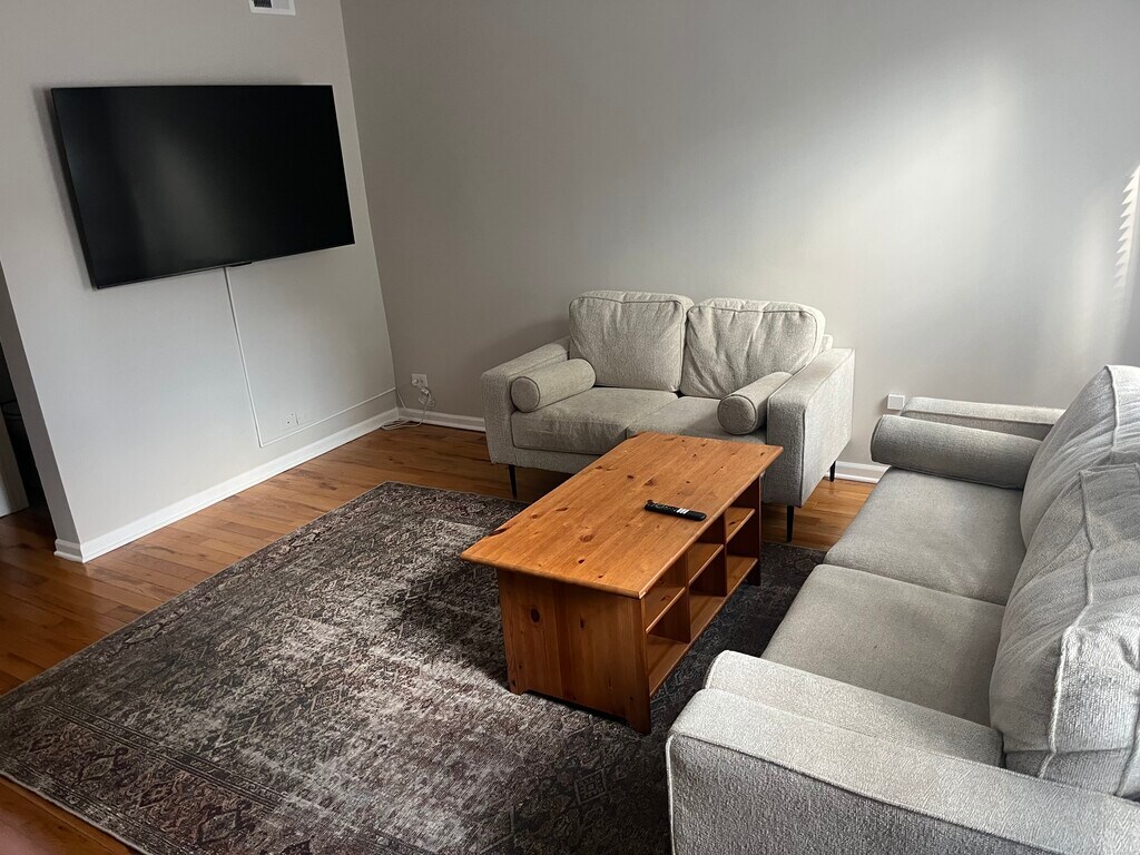 Renting the lower unit of a 2 flat in the charming neighborhood of Roscoe Village, "the village in the city". Unit has 3 bedrooms, 2 bathrooms, a full kitchen and living area as well as a private parking spot off street. Utilities included, AC, heat, natural gas, water, trash. Unit is a basic furnished rental. Tenants must provide their own bedding, kitchenware and toiletries. Unit is a 6 month minimum rental.