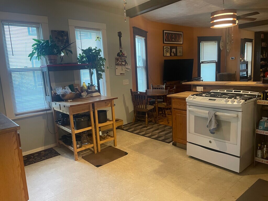 This 2BR 1 Bathroom unit includes off street parking (driveway & garage space) for $1600/month. This 1st floor space is part of a duplex with a huge, fenced in yard (complete with raised bed gardens, fire pit and patio). This private unit features 2 bedrooms with large walk-in closets, full bathroom with clawfoot tub and shower, as well as a 3 season walk-out porch. Huge pantry and kitchen space with gas stove and full fridge. Free but shared laundry in the basement. Must be ok with dogs, which share the yard. Pet fee is $50/month for cats, $100/month per dog. Great neighborhood located near Central & Lowry NE in the heart of the Historic Arts District. Close to the Quarry (Target, Cub Foods, Home Depot), Eastside Food Cooperative, FairState Brewery, Holy Land, Hai Hai. Deposit and background/credit check required. Just a few minutes drive from I-94 and I-35 in a safe and quiet neighborhood. Lease for 6 months available.