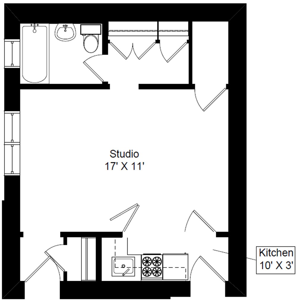 Studio, 1 Bath, 220 sq ftAvailability Details