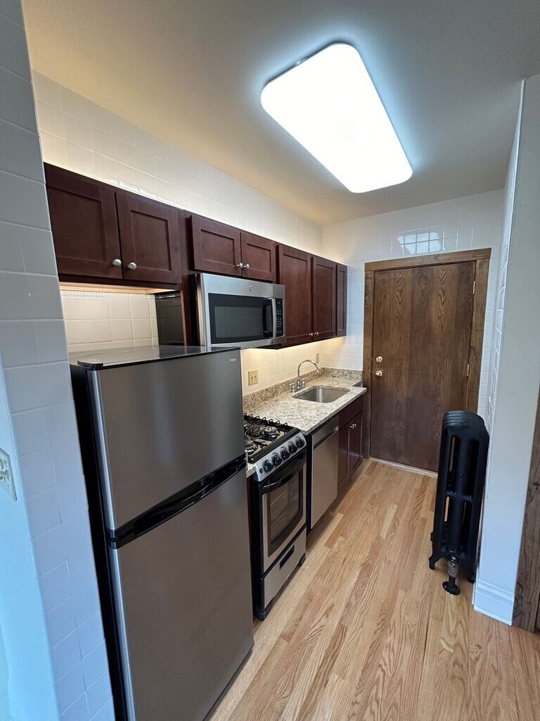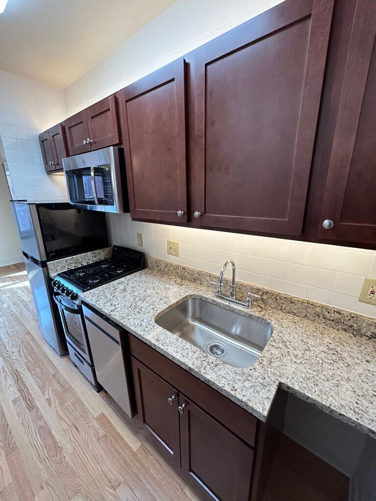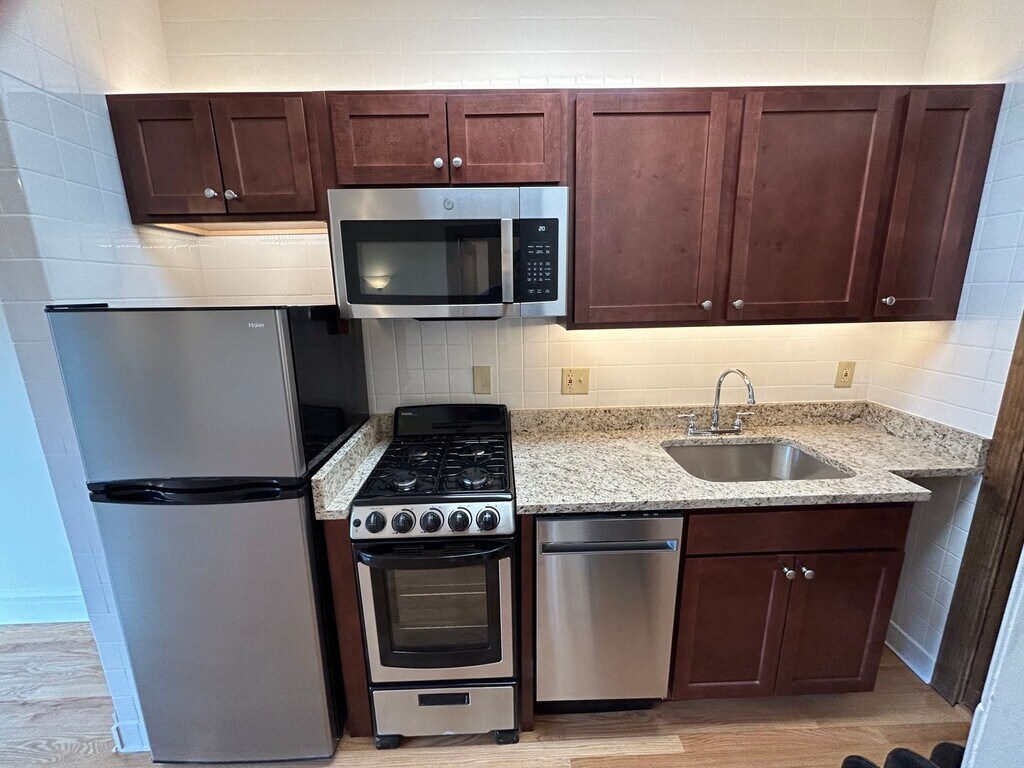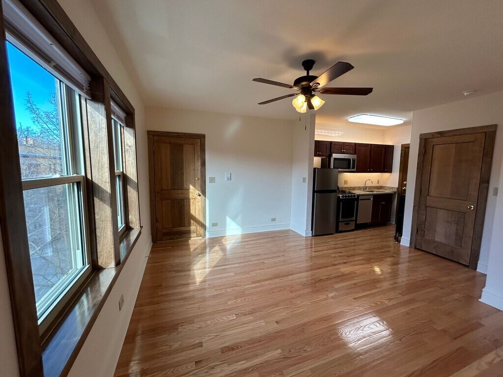 Spacious street view studio in the heart of Lincoln Park offers HEAT, WATER and COOKING GAS included in the rent. Recent renovations include: all new hardwood floors, all new kitchen and bathroom with all new fixtures including: Granite Counter tops Stainless Steel appliances including a dishwasher Custom shower stall with frameless glass enclosure All new ceiling fans and light fixtures This property is a short walk to the Fullerton El lines (red / purple / brown) and multiple CTA bus lines. It is also close to Lincoln Park Zoo, Lake Michigan, Lake Shore Drive, and more!