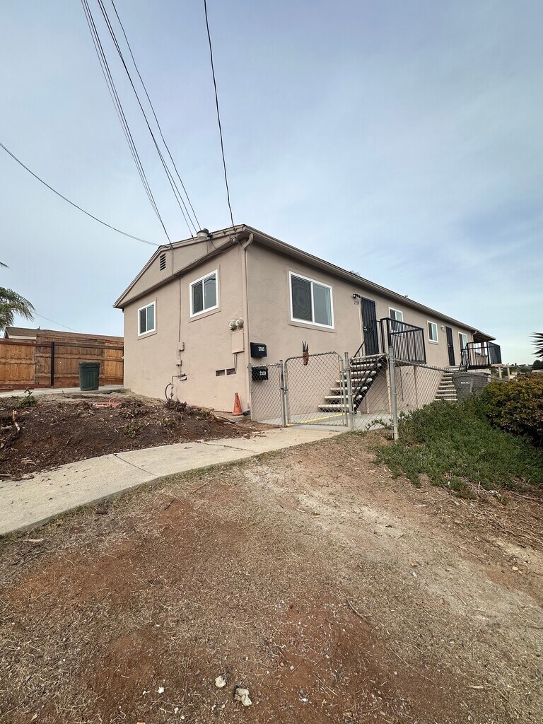 This newly renovated 2-bedroom, 1-bathroom property located at 2339 Van Ness Ave in National City (Lincoln Acres), offers 700 square feet of indoor living space. The kitchen includes brand new kitchen cabinets, quartz counters, and stainless steel appliances. A washer and dryer are located just below the entry staircase for laundry convenience. The living room and bedrooms are open and airy, with new flooring covering the entire unit. The bathroom has also been fully renovated with tile flooring, tub shower, and sink vanity. This unit also includes a large covered deck attached to the kitchen/living area and the right half of the large backyard. The property is on a corner of a quiet block, right across from the park behind Granger Middle School, so there is lots of street parking available. Utilities will be $150 per month (included within monthly payment, bills paid by owner).