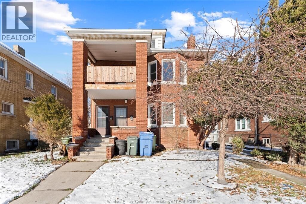Full Brick 2 1/2 storey up and down duplex with nicely finished hardwood floors and trim throughout. Fully renovated kitchen,bathrooms,good-sized bedrooms,full basements with tall ceiling heights equipped with waterproofing,washer and dryer sets. Full balcony and massive loft space on the 3rd floor. Completely separate hydro,gas meters,furnaces,AC units. Newer vinyl windows throughout. Parking space off the alley,shared side patio. Tenants pay all utilities. All appliances included. Located Central Windsor,walking distance to shopping and retail along Ouellette and Erie,minutes from Kennedy High School. (id:52069) ID#: 2091404