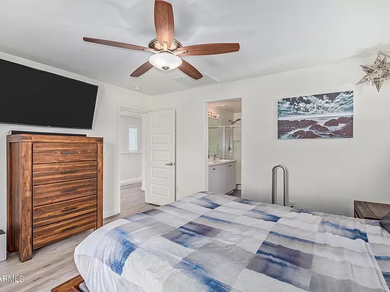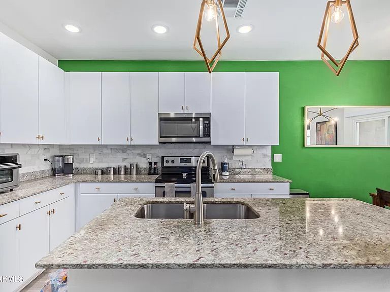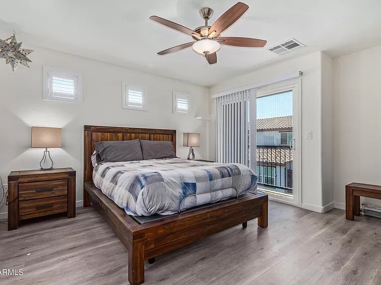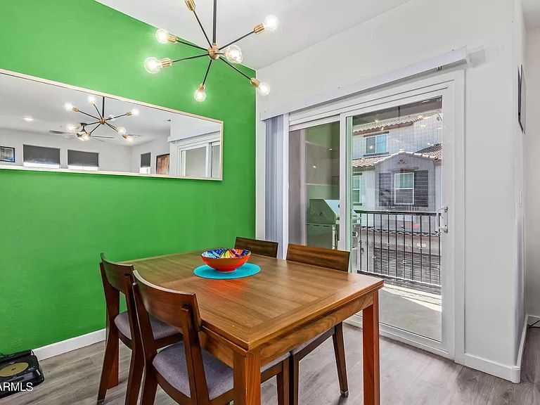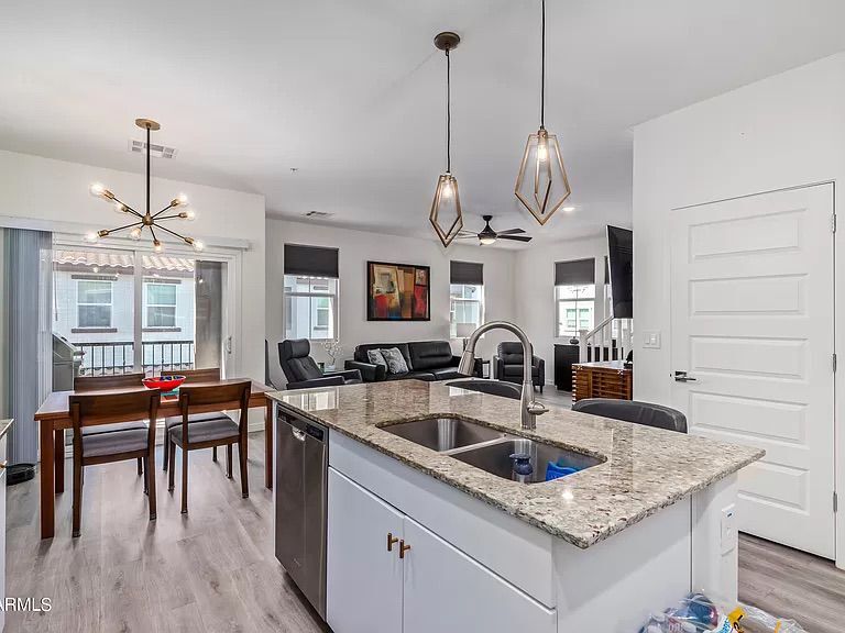 Upgraded end unit! This light and bright, move in ready 3 bedroom 2 bath home is waiting for you. Open to the comfortable living area, the kitchen-with granite counters, island with breakfast bar, dining area, and stacked washer & dryer. This level also has it's own private balcony and 2 bath. Both bedrooms are on the upper level-the primary en suite with balcony, and walk in closet! The second bedroom is across the hall from the full bath. LVP flooring throughout-no carpet! The attached 2 car tandem garage has extra space for storage. Great for full time living or lock and leave! Centrally located near shopping, dining, and Sky Harbor Airport
