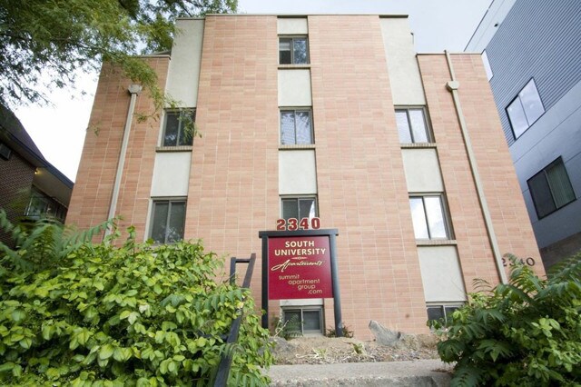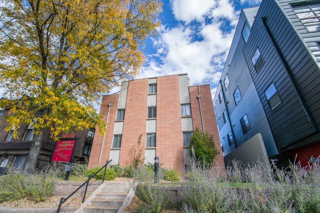 Welcome home to South University, an inviting community that is home to several DU students and DU Graduate Students. South University Apartments is located conveniently on South University Boulevard in Southeast Denver less than one block away from the University of Denver across the street from the Newman Center for the Performing Arts. Residents at South University also enjoy easy access to I-25, Light Rail, and a short 6 mile drive to downtown Denver.All above ground units have spacious balconies, some with spectacular views. There is also a rooftop patio to enjoy with your fellow neighbors and take in the abundant sunshine that Colorado has to offer. On the lowest level there are locked storage enclosures as well as laundry facilities located on site for all residents.