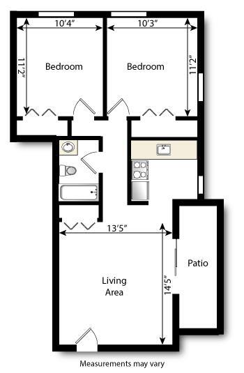 2 Bed / 1 Bath - Floorplan 2 ![]()