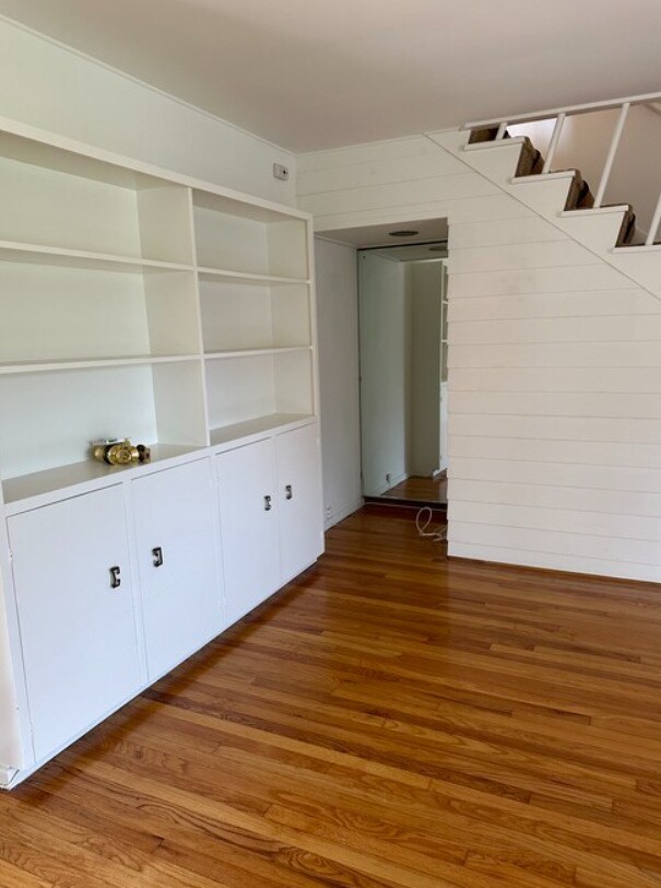 End unit, private individual garage, built in cabinets in living room and bedrooms, plenty of storage.