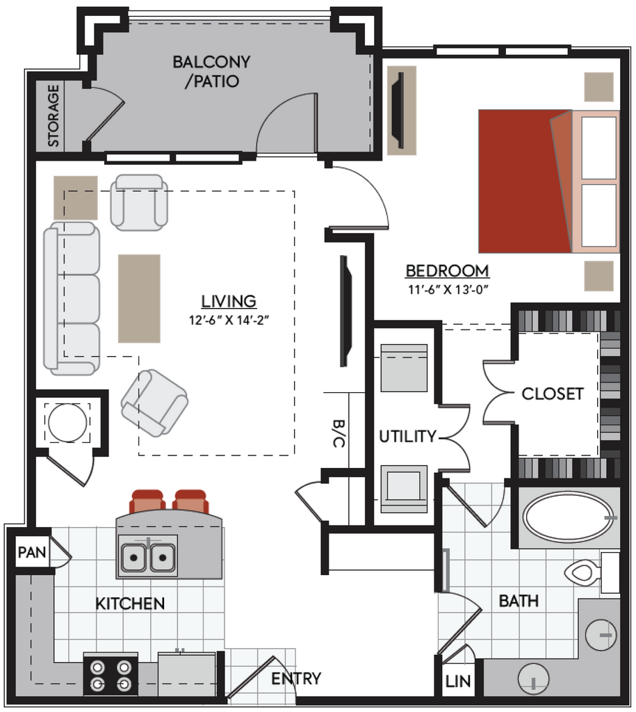 Apartment Model: A2From $1,4031 Bedroom, 1 Bath, 810 sq ftAvailable Now![]()
