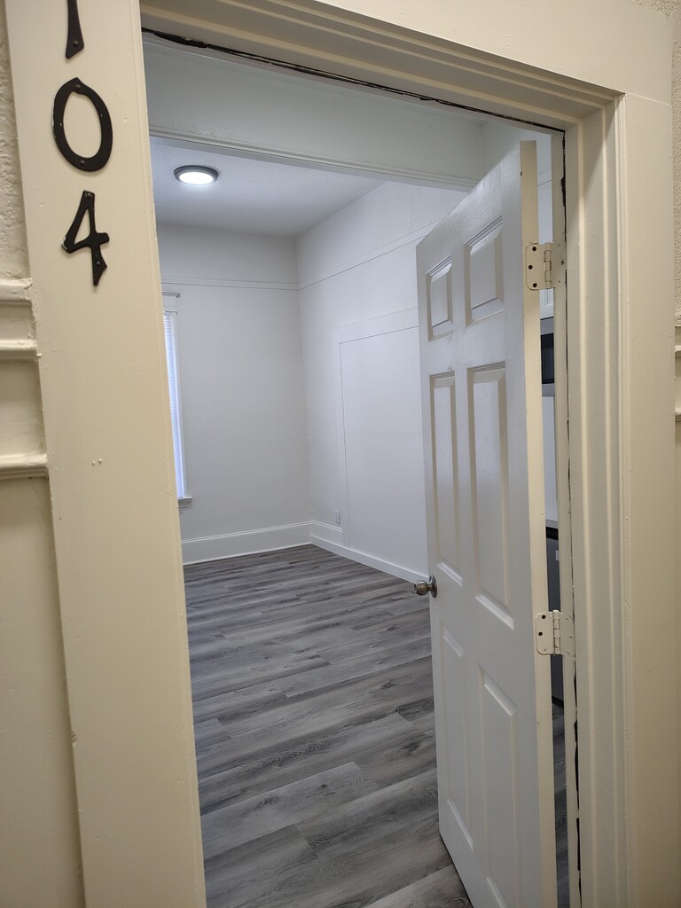 Newly Renovated Space Now available! Sunny Space with New Bathroom and Kitchenette. New plank floors. Lots of light and Great Price! Laundry in the building. Outside we have a community garden and picnic tables and bike racks. There is Secured Off Street parking at $100/mo if you wish to rent a space for parking There is a Utility Fee to pay PGE/Water/Trash of $120/mo in addition to rent. We have installed a Monkey Brains Hub on the roof so WiFi is so very fast and affordable. We have a couple of units available. Apt M $ 1400 Apt 203 $ 1400 apt 301 $ 1375 We also have units with 2 or 3 private rooms with your own private Kitchenette that share 1 bathroom for $900/mo. We are showing units on ***** Saturday 5pm to 6pm & Friday 5:30pm to 6pm ***** Applications at the property . We require fully completed Applications and Proof Of income, and Proof you paid your last 3 months of rent. Your credit report needs to show that you pay your bills timely and have no evictions.