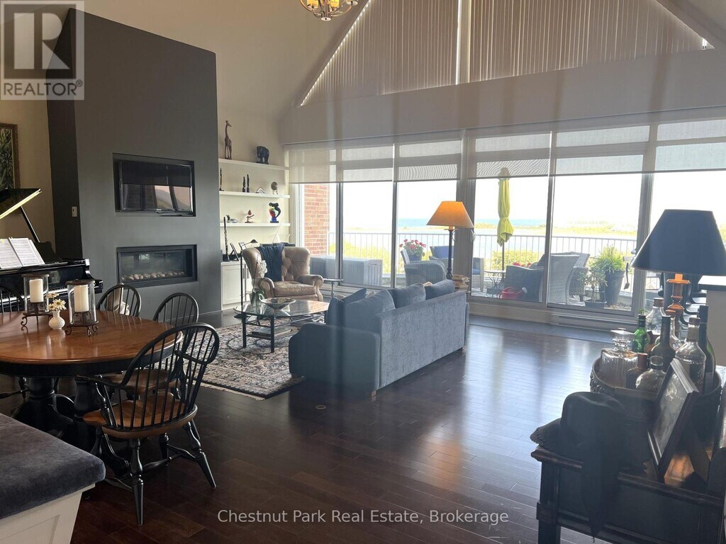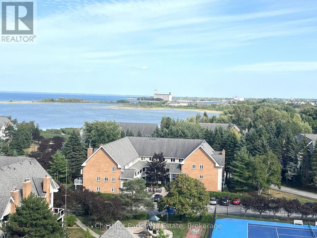 Arguably THE best view in Collingwood with stunning views toward Collingwood Terminals and beyond as well as toward Blue Mountain and the ski slopes. This upscale 2 bed 2 bath penthouse condo with Den in Bayview Tower will appeal to the discerning tenant. Open concept Living/Dining/Kitchen provides the perfect space to enjoy evenings with Family and Friends after a day on the slopes. Vaulted ceilings with an abundance of windows allow natural light to flood in. The Living Room has a gas fireplace and the Kitchen comes fully equipped with stainless appliances and 2 breakfast bars. Primary bedroom has a King bed with spacious en-suite and the 2nd bedroom has a Queen with its own balcony. Gas hook-up BBQ on the balcony. Ruperts Landing is a gated community with indoor pool,hot-tub,squash court,games room and sauna. Only minutes to the downtown core of Collingwood and a short few minutes drive to Blue Mountain. 4 Seasons activities abound with direct access to the trail network close-by. Pet will be considered. Utility/damage deposit of $3,000. (id:52069) ID#: 1993070