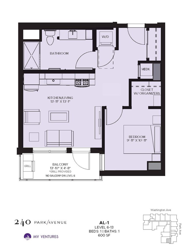 1 Bed, 1 Bath, 600 sq ftModel Gallery