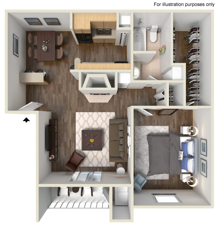 1 Bed, 1 Bath, 505 sq ftAvailable NowModel Gallery