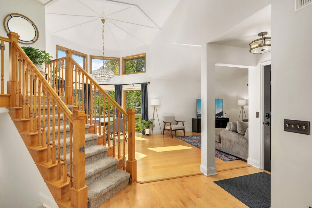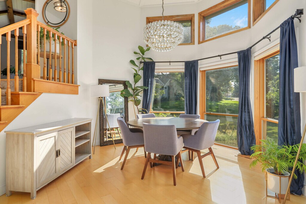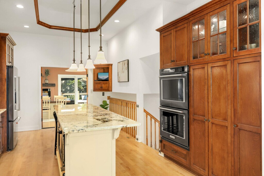 Located in the highly sought-after Wayzata School District, this updated 5-bed, 4-bath home offers a seamless flow and high-end finishes. The custom kitchen, featuring 14-ft ceilings and a panoramic view of the home, is the centerpiece, showcasing granite countertops, a center island with bar seating, soft-close cabinets, hot water tap, and black stainless steel appliances, including a gas stove, double oven, single basin sink with garbage disposal, and dishwasher. The vaulted dining room connects to the living room, providing views through the kitchen to the four-season porch. The main floor includes a versatile bedroom or office space. Relax in the four-season porch, complete with an electric fireplace and access to the deck and stamped concrete patio. The primary suite is a retreat with wood-beamed ceilings, a walk-in closet, double sinks with granite countertops, and a tile floor and shower. The upper level features three large bedrooms and an updated full bathroom. The home also boasts two family rooms: one with a cozy gas fireplace plus wine fridge and another ideal for a movie theater or entertainment area with a wet bar. Additional storage is available in the utility room. Upgraded with a new roof and driveway, updated windows, newer appliances, and Honeywell Total Connect Comfort, the home ensures efficiency and cost savings. The gas-heated, professionally epoxy-coated three-car garage adds extra space and functionality. Move-in ready and situated on a ½-acre lot in desirable Fox Run neighborhood on a cul-de-sac, this home has all the benefits of luxury living inside and out. Exterior features include a ring doorbell, keypad entry, in ground sprinkler system, 8x12 shed, and professional landscaping. Conveniently close to Maple Creek Park, walking trails, grocery stores, Lowes, theaters, Lifetime Fitness, and just minutes from Wayzata. Don’t miss this opportunity!