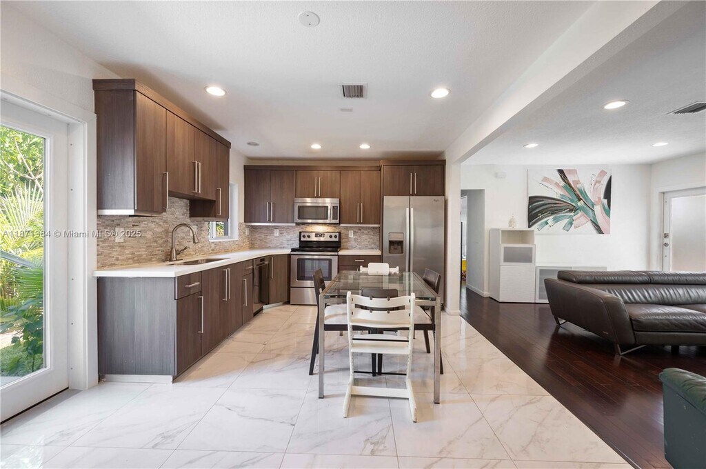 Charming and spacious single-family residence offering 4 bedrooms and 3 bathrooms in the desirable Silver Bluff neighborhood. This light-filled corner home features an open-concept layout with elegant Brazilian cherry wood floors, luxurious marble bathrooms, and impact-resistant windows throughout. The European-style eat-in kitchen is equipped with rich wood cabinetry and granite countertops, perfect for both cooking and entertaining. Prime location close to Coconut Grove, Coral Gables, and Downtown Miami. A must-see!