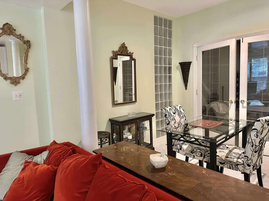 Grand and light-filled English basement in a prestigious Dunn Loring neighborhood. With soaring 10-foot ceilings, this fully furnished 2-bedroom, 1-bath home features a spa-style bath with both a deep soaking tub and separate shower, plus a private water closet for true luxury living. The additional room is ideal for an office, guest space, or dining area. Perfectly located near Merrifield Metro, Mosaic District, and Tysons Corner. Just bring your clothes, this elegantly furnished rental is ready for you.