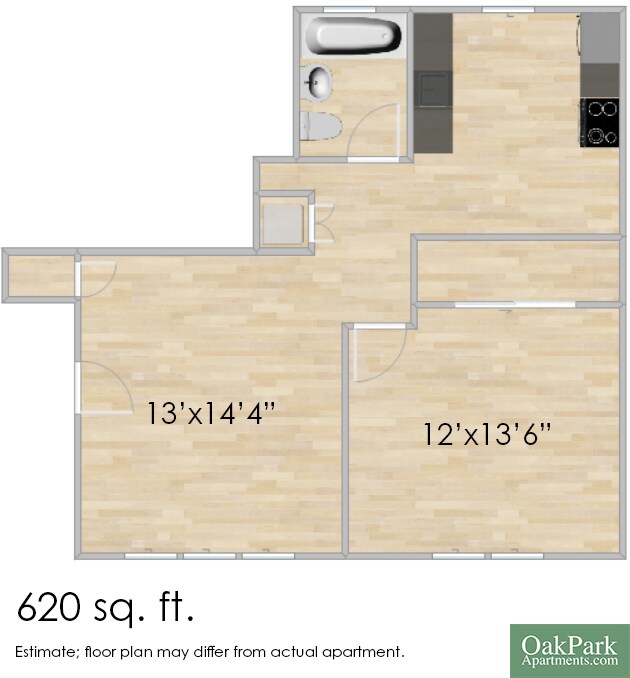 1 Bedroom - Floorplan 2 2 Bedrooms