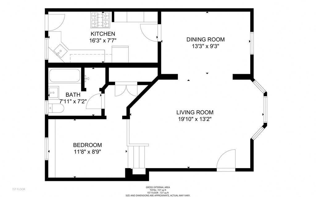 1 Bedroom, 1 Bathroom - Floorplan 1 ![]()