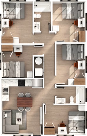 4 Bedroom | 2 Bath - Floorplan 1 Apartment Unit: Deluxe-PrivateXLApartment Model: 4 Bedroom | 2 Bath$2,5164 Bedroom, 2 Bath, 962 sq ftAvailable NowApartment Unit: Deluxe-SharedApartment Model: 4 Bedroom | 2 Bath$1,2584 Bedroom, 2 Bath, 962 sq ftAvailable NowApartment Unit: Premium-PrivateApartment Model: 4 Bedroom | 2 Bath$1,6754 Bedroom, 2 Bath, 962 sq ftAvailable Now4 Bedroom | 1 Bath