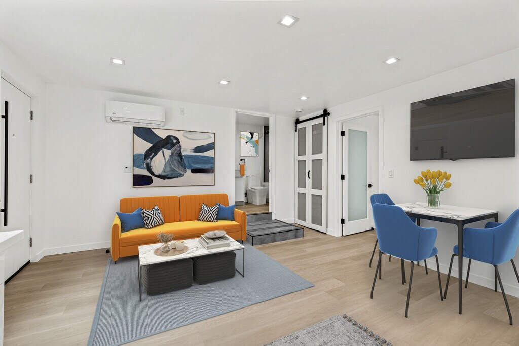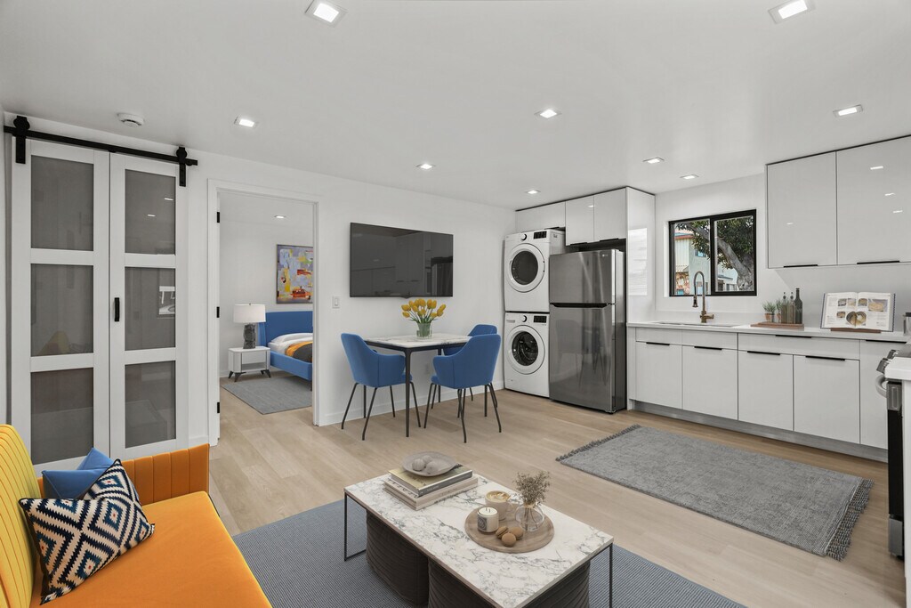 Carefully restored and designed by a renowned LA designer, these modern themed rental homes in hip Frogtown feature keyless entry door locks to spacious two- and three-bedroom floor plans with newly renovated kitchen and bathrooms. The kitchen boasts sparkling white stone quartz countertops with brand new self-closing cabinetry and stainless-steel refrigerators with matching gas cooktop with oven and microwave. Stacked washer and dryers included inside each rental home with porcelain tiled bathtubs, oversized vanity mirror, and glass shower doors and some with separate guest bathrooms. Each rental homes also includes central A/C cooling, heating with recessed lights with distressed wood plank floors, and cellular shade window blinds. Located about 5 miles from Downtown LA and 6 miles from Glendale, Frogtown is ideally located between large established economic and employment centers as well as dynamic neighborhoods that undergoing dramatic growth, gentrification and commercialization. Flanked on the north by Atwater Village, on the northeast and east by Glassell Park, on the southeast by Cypress Park, on the south and southwest by Elysian Park, and on the west and northwest by Echo Park and Silver Lake. Frogtown is a small, close-knit community with an eclectic yet timeless vibe that has wide appeal. Young professionals enjoy the urban proximity and slightly reduced cost of living while families appreciate the area’s highly rated schools and diverse single-family home options. With a population of less than 10,000, this dog-friendly neighborhood is an authentic place where neighbors wave, waiters know your regular order, and bartenders greet you by name. There is also strong local advocacy for maintaining Elysian Valley’s old school LA charm while balancing its exciting commercial and residential growth. Drake Real Estate Group | Welcome home | Schedule your private viewing today | | EXTERIOR | - Newly Modernized Façade - City Approved & Completed Earthquake Seismic Retrofit - Keyless Electronic Entry | INTERIOR | - Cellular Shade Window Blinds - Spacious Designer Floor Plan - Vinyl Plank Flooring | KITCHEN | - Modern Designer Cabinetry - Quartz Countertops - Stainless-Steel Appliances - Refrigerator - Range w/ Oven - Microwave - Open Kitchen Space Layout | BATH | - Tiled Shower and Bath - Glass Shower Doors - Oversized Vanity Mirror | AMENITIES | - Washer & Dryer (in unit) - Assigned Parking - A/C Units