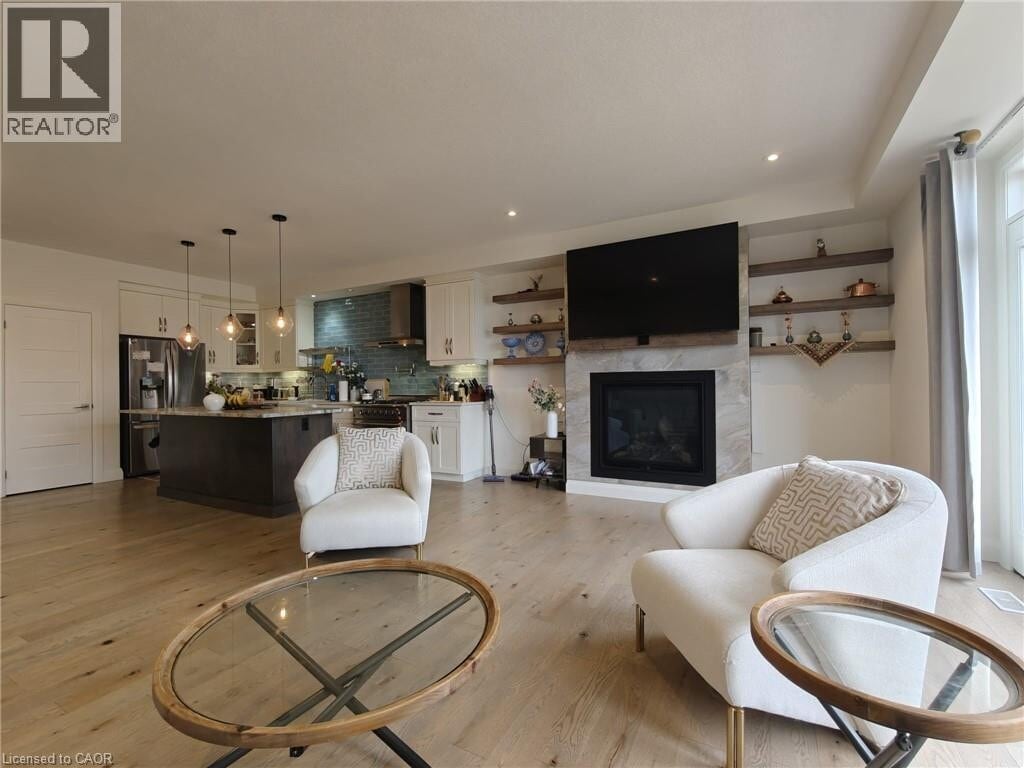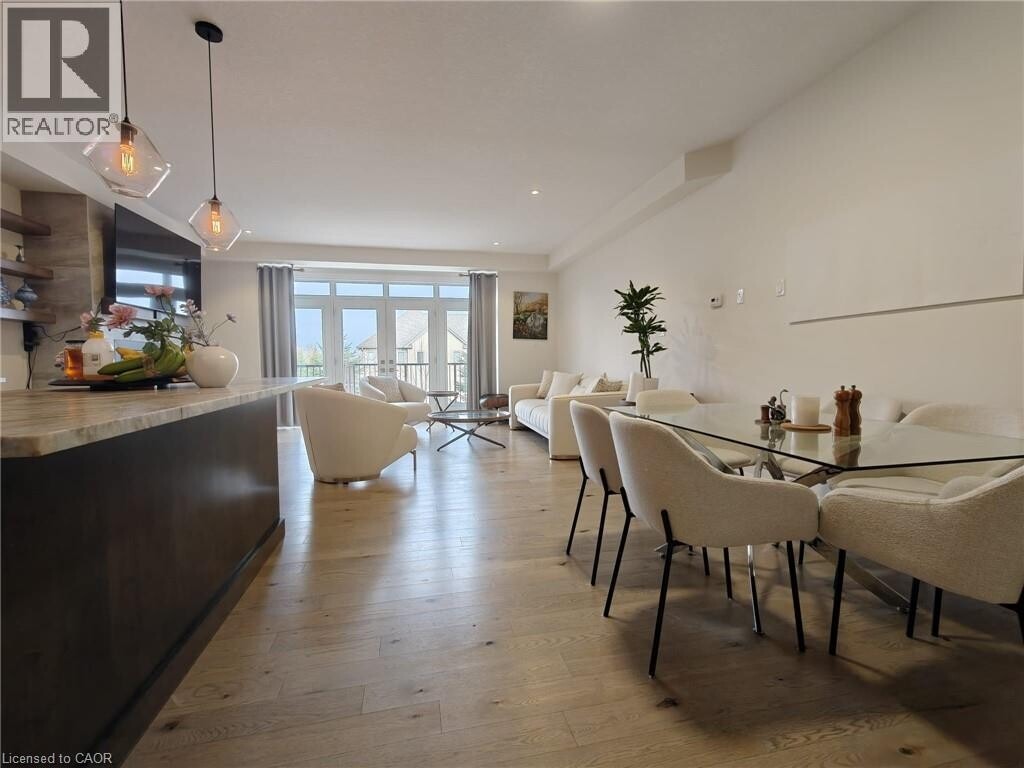 Welcome to this executive 3-bedroom,3-bathroom condo townhome in the highly desirable Grey Silo community of East Waterloo. This well-maintained home offers over 2,000 sq. ft. of bright,open-concept living space with hardwood flooring throughout the main level. The modern kitchen features granite countertops,stainless steel appliances,and a large island,opening to a spacious living and dining area with a cozy gas fireplace. Walk out to a private deck with BBQ hookup,perfect for entertaining. Upstairs includes a generous primary bedroom with walk-in closet and ensuite,plus two additional bedrooms and an additional full bathroom. Located steps to RIM Park,Grey Silo Golf Course,Grand River trails,and minutes to shopping,schools,and Highway 85. Ideal for professionals or families seeking comfort,convenience,and a premium lifestyle setting. (id:52069) ID#: 2055634