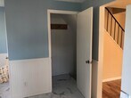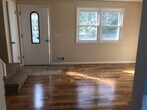 Spacious 2 bdrm. apartment with large closets and ceiling fans. Linen closet and full bath. New carpet on stairs and in bedrooms. Large living room with refinished wood floor. New vinyl floor in eat in kitchen. New fridge and stove. Nice size pantry. All rooms freshly repainted. Basement has full laundry with new dryer. Freshly painted walls. Huge fenced back yard with shared deck. Garage included. Shared driveway. 100% Smoke free. Must see. Won't last.