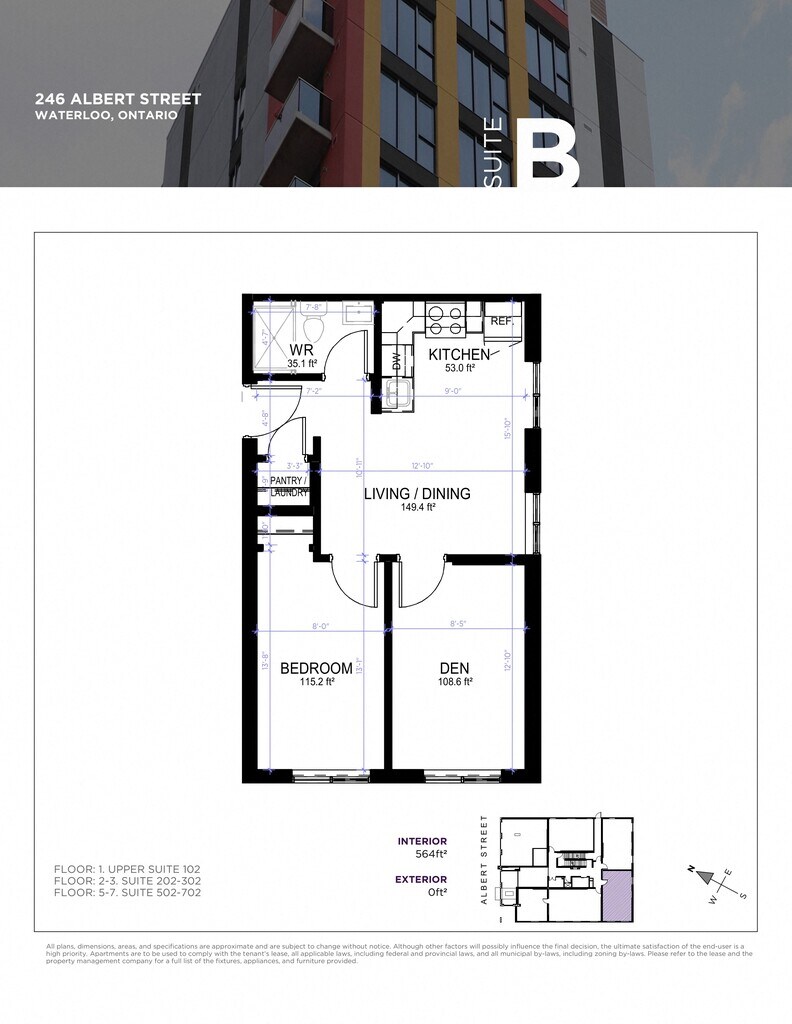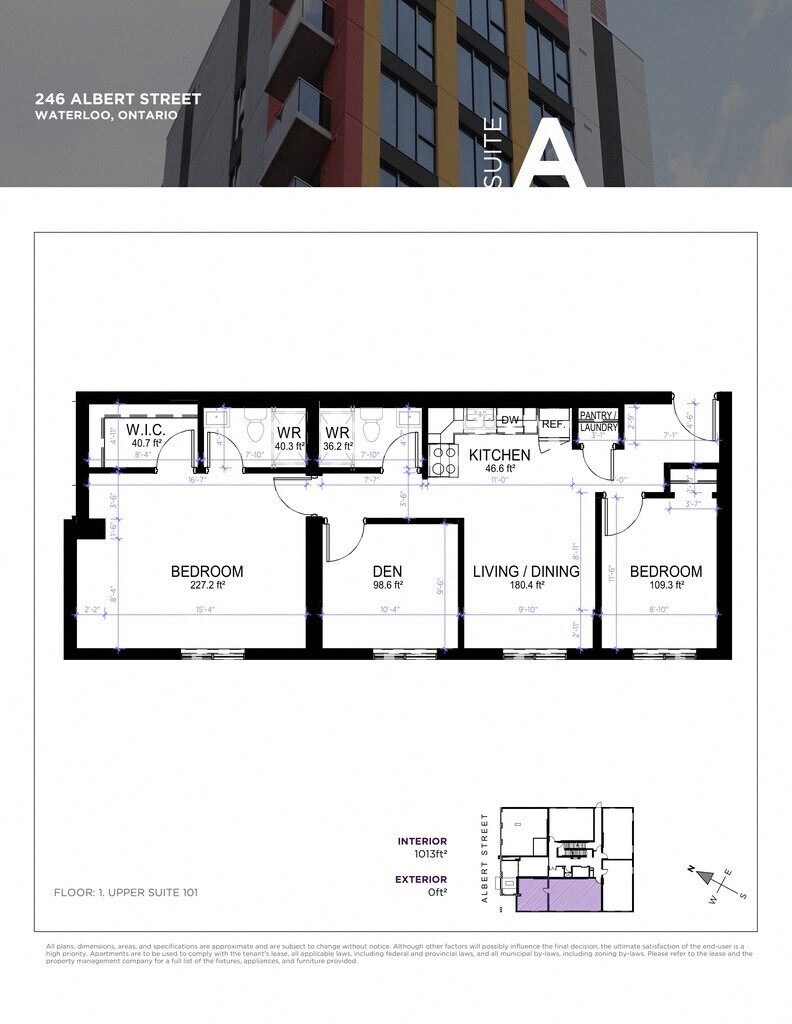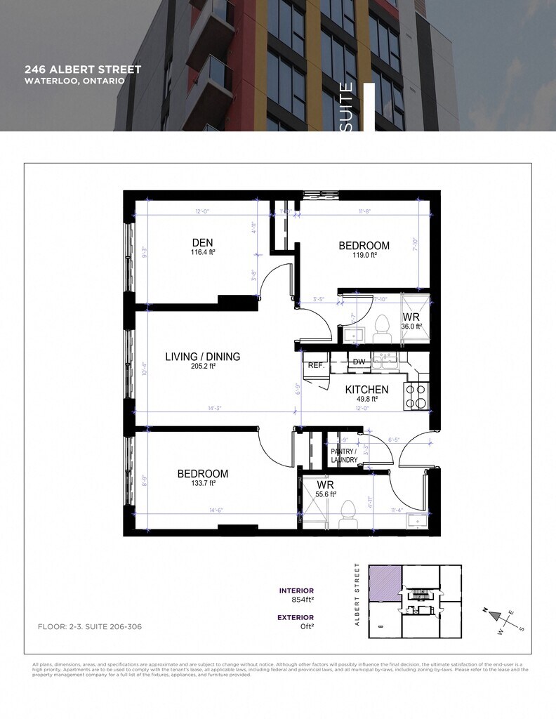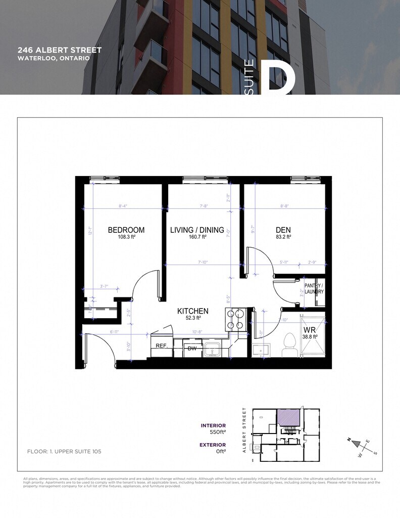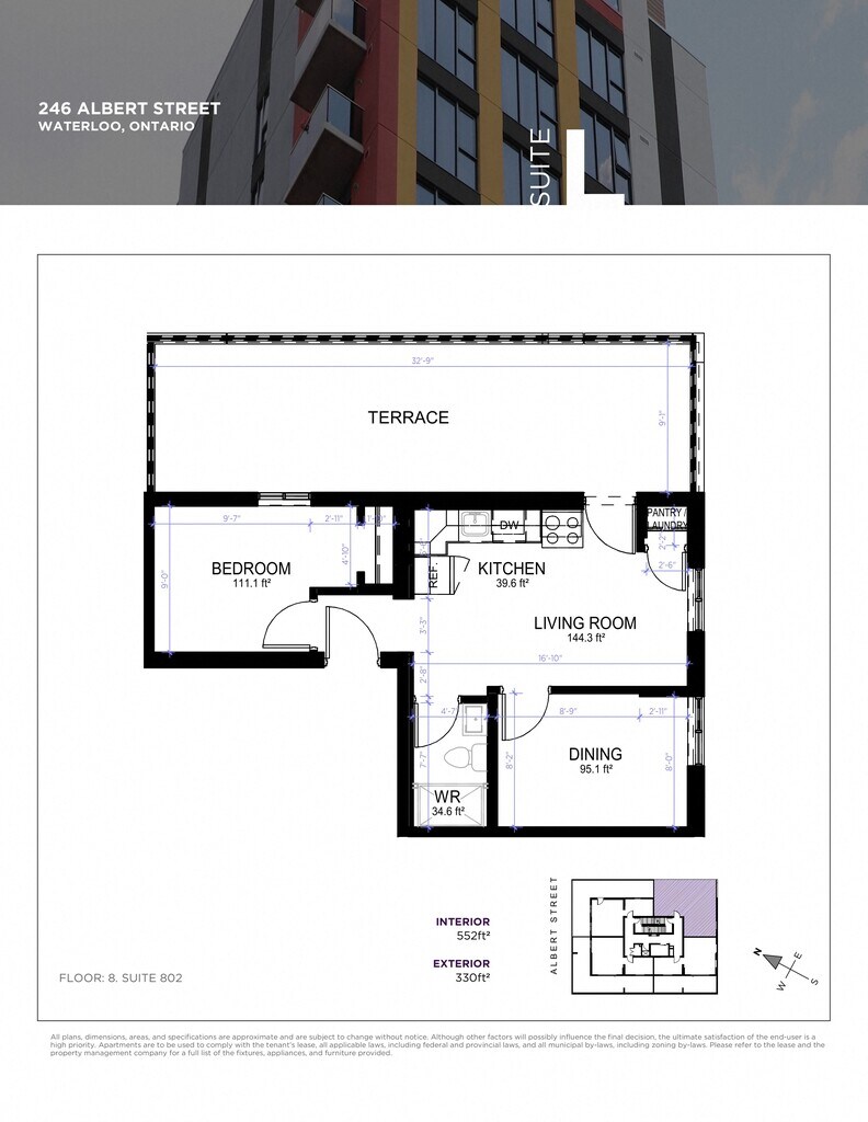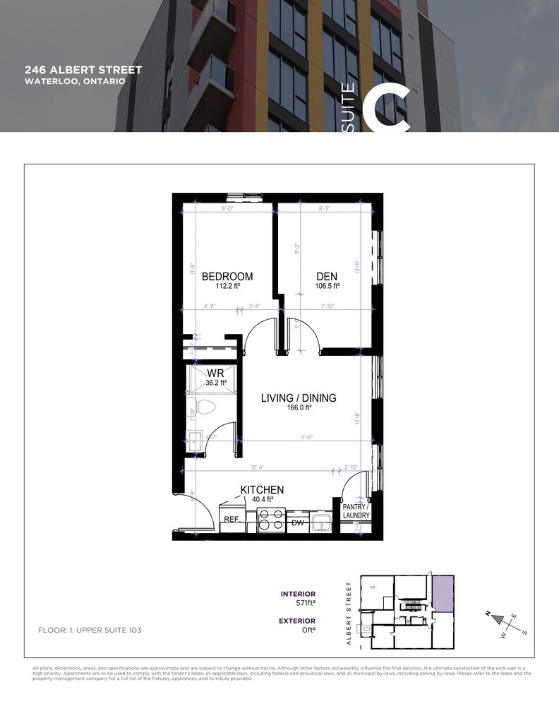 246 Albert Street is the radiant and contemporary residence designed as a sanctuary in the heart of Waterloos University District. Built for vibrant individuals who crave a sense of connection within the city, youll enjoy walkable access to cultured cuisine, boutique shopping, lush parks, local hotspots, and both of Waterloos universities. With its striking interlocking panel system providing both privacy and architectural flair, 246 Albert Street is more than an address. Its a bright, modern canvas for your life to shine.