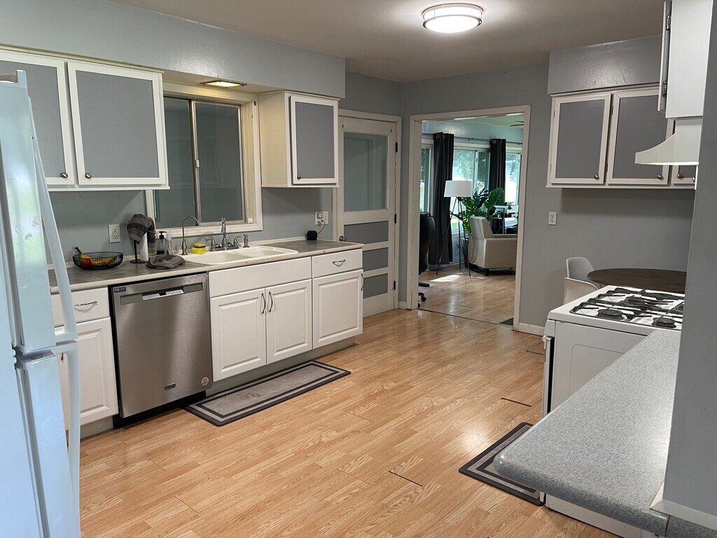 Lake view home in the Village of Grass Lake (near downtown). Near boat launch and lake access. Includes appliances. First floor laundry. Hardwood style floors throughout. Two full bedrooms and third bedroom or office with sliding door that opens to deck. Large unfinished basement. Spacious backyard with fire ring and view of Grass Lake. Take your boat to the launch just down the street. Two-car attached garage for toys and vehicles. No smoking on property. Some dogs with approval, pet fee, and pet rent. No cats. Tenant pays utilities, lawn and snow. Security deposit and first month's rent due at signing. Application + credit check + background check required. Available Oct 1 -- apply today!