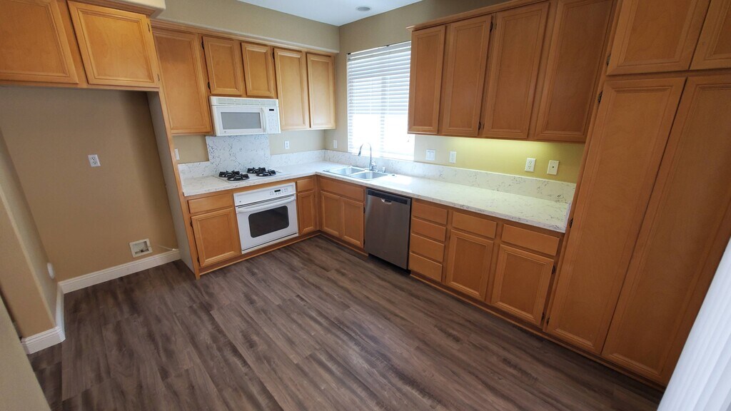 Two-story single family home for rent in a beautiful neighborhood in the center of Valencia. Within walking distance to shopping centers, close to mall and dining and large city park. The safe quiet neighborhood is family friendly. Bright, Open 3 bedrooms, 2.5 bathrooms, dining and private back patio, central air conditioning and heating. 2 car attached garage + 2 car private driveway. Upstairs laundry Hookup. Free access to Clubhouse including Pool, Jacuzzi, playground and BBQ picnic area. Master Bedroom has separate shower, jacuzzi bathtub, his and hers sinks and 2 closets. Ceiling Fans in every room. The house is right off of Copperhill, close to highway 5 and 126. Only 12 minutes away from Castaic Lake. Santa Clarita has excellent schools and over 60 miles of Paseo trails. RENTAL FEATURES Parking for 4 vehicles Gas Fireplace in Living Room Gas Stove Garbage Disposal Central A/C and Heat Microwave Upstairs Laundry Convection Oven Dishwasher COMMUNITY FEATURES Clubhouse w/pool and Jacuzzi Less than 1/2 mile from Preschool Close to Highway 5 and 126 Paseo Trails and Park Close to Shopping and Dining Heritage Park & Tennis Courts 12 minutes to Castaic Lake LEASE TERMS We pay all Home Owner Association dues. You pay your utilities. 1 year lease (then month to month), plus security deposit. No pets or smoking. Credit/Background check required for all adult applicants, no exceptions!