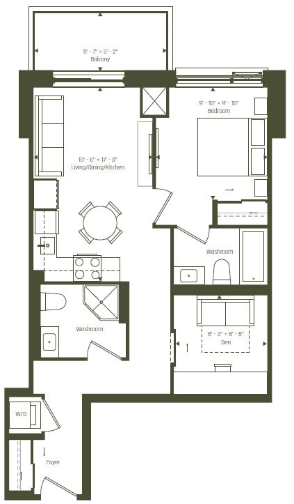1D-B - 1 Bedroom + Den - Floorplan 1 Apartment Unit: 405Apartment Model: 1D-B - 1 Bedroom + Den$2,7951 Bedroom, 1 Bath, 691 sq ftAvailable Now2 Bedrooms